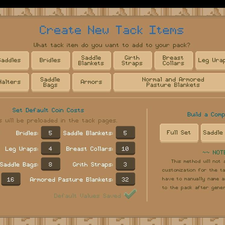 The first SWEM add on mod! Over 2000 tack items added to the game with both recipe crafting and community pack additions.
